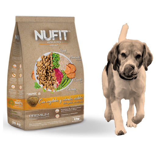 El alimento Nufit Adulto está formulado para cubrir las necesidades nutricionales de perros adultos, aportando proteínas de calidad que ayudan a mantener su masa muscular y energía diaria. Contiene vitaminas y minerales esenciales que fortalecen el sistema inmune, además de ingredientes que favorecen una digestión saludable y un pelaje brillante. Es una opción completa y balanceada para mantener a tu mascota sana y activa.