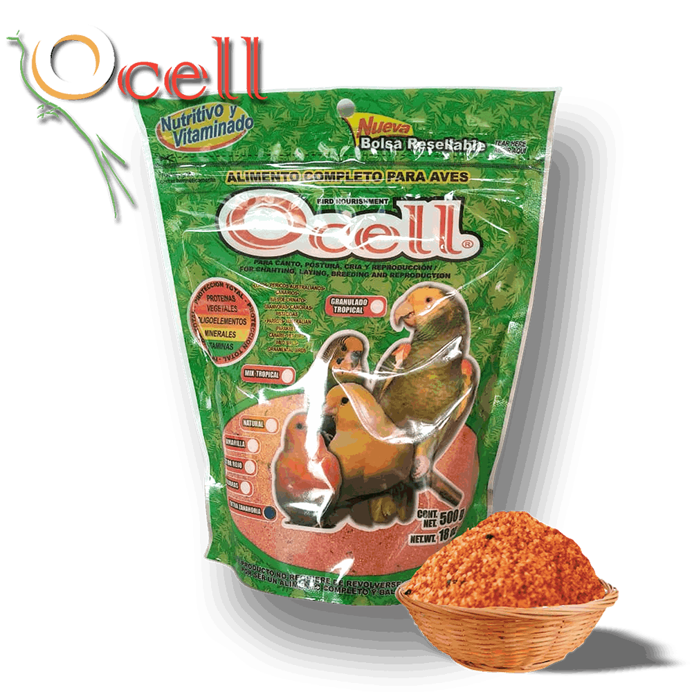 Contiene Betacaroteno, fuente natural de pigmentantes para avivar el color natural de la pluma.