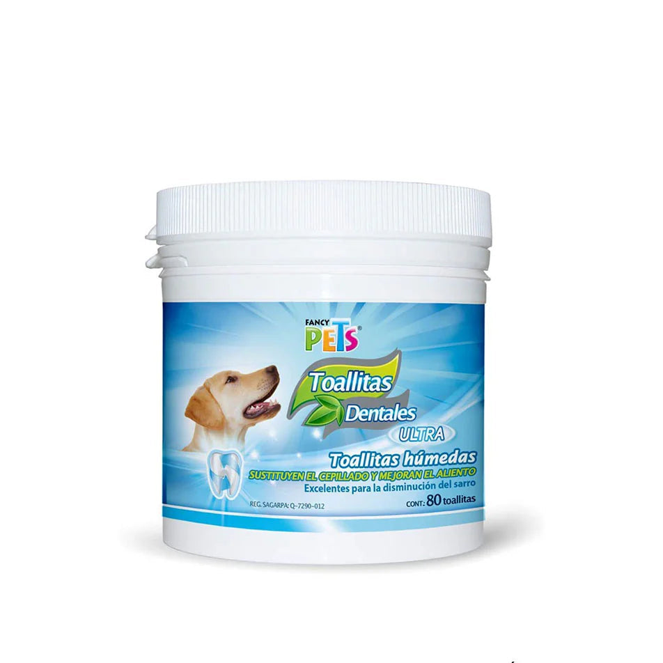 Las toallitas dentales son una alternativa para el cuidado diario de los dientes y encias de nuestros peludos amigos, que toleran la manipulación directa en la limpieza bucal pero que aún no permiten el cepillado directo. Su formula contiene iones que evitan el sarro, antibacterianos para disminuir la placa dentobacteriana y previenen la gingivitis o periodontitis.
