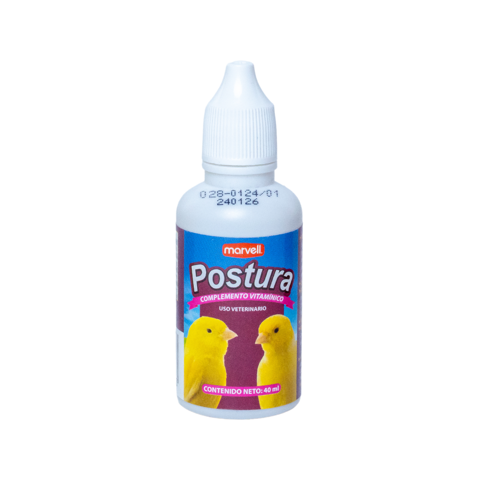 Postura, en su presentación de 40ml, es un complemento vitamínico diseñado para fortalecer la fertilidad, la reproducción y el proceso de puesta en aves. Esta fórmula contiene una mezcla equilibrada de vitaminas esenciales que apoyan la salud reproductiva de las aves, mejorando la calidad de los huevos y promoviendo una mayor tasa de éxito en la reproducción. Es ideal para aves de corral y aves domésticas que se crían para la producción de huevos, ayudándoles a mantener un sistema reproductivo saludable y activo