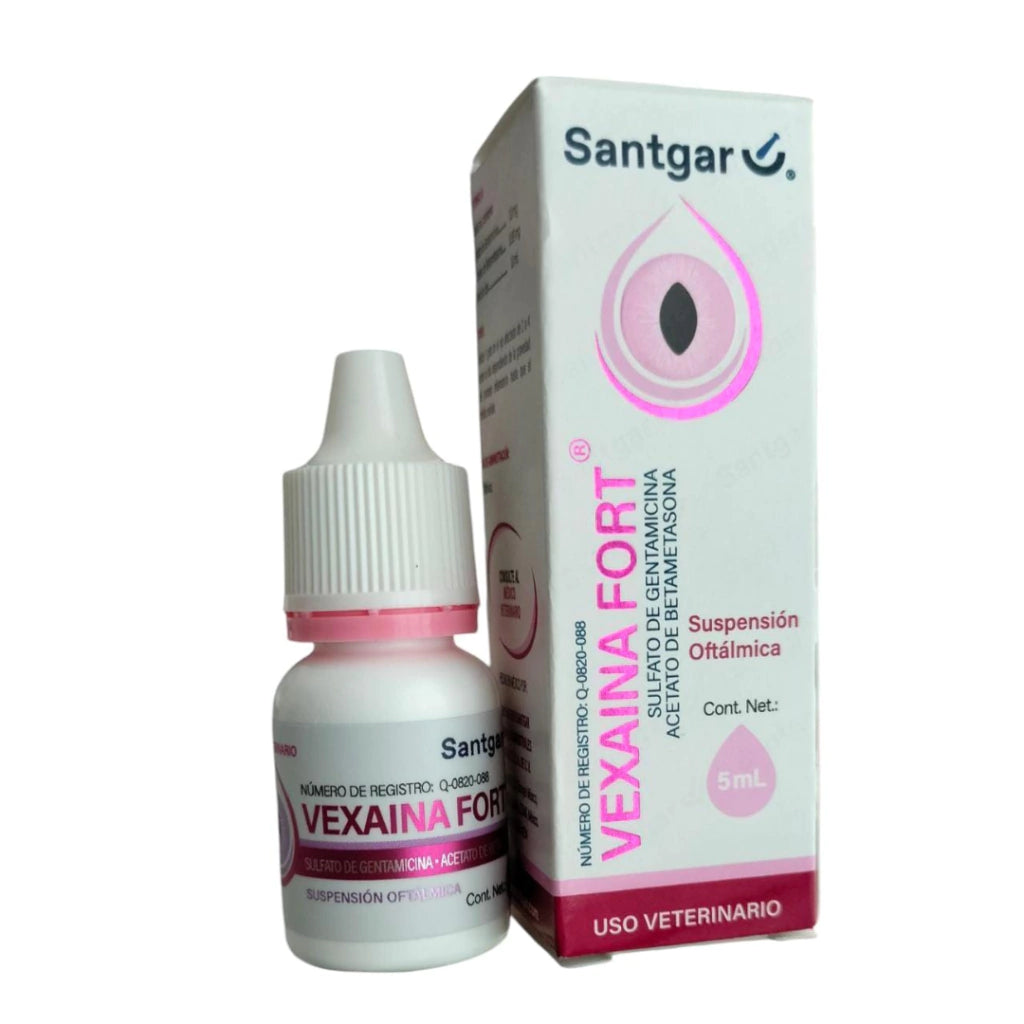 Vexaina Fort (o Betagen Forte) es una solución oftálmica veterinaria para perros y gatos que combina un potente antiinflamatorio (Betametasona) y un antibiótico para tratar inflamaciones oculares no ulcerativas como conjuntivitis, queratitis superficial y uveítis anterior, pero está estrictamente contraindicado si hay úlceras corneales, requiriendo siempre receta y supervisión veterinaria para evitar daños graves.